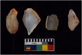 | Description / विवरण | There are n 4 of utilized worked cores and show multidirectional irregular scar pattern on both dorsal and ventral sides. Two are tapering at one end. |