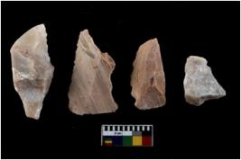 | Description / विवरण | There are 4 flake cores. All of them are fully fluted flake cores without any trace of crested ridge flakes. Some have flat base while few have round edges. |