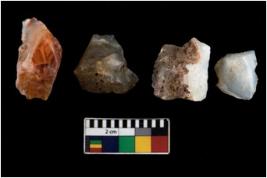| Description / विवरण | There are n 4 ; worked utilized flakes; there are multidirectional irregular scar pattern on both dorsal and ventral face of the flakes. Three of them have flat base. All are having sharp edges. |