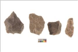 | Description / विवरण | There are n 4 flakes tool; there are multidirectional irregular scar pattern on them; made of short flakes and all four have tapering edges. |