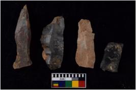 | Description / विवरण | There are n 4 flakes tool; there are flakes with sides trimmed, Marks of secondary flaking are present on the both the faces. |