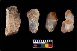 | Description / विवरण | There are n 4 cores; there are multidirectional irregular scar pattern on them. The reverse bulb and platform can be seen. |