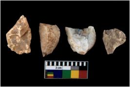 | Description / विवरण | There are n 4 utilized flake cores. Out of them one is made up of Chert and three are made up of Chalcedony. There are multi directional irregular scar pattern on them. One has sharp edge and three have blunted edges. |