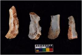 | Description / विवरण | There are n 4 flakes tool; there are flakes with sides trimmed, Marks of secondary flaking are present on the both the faces. |