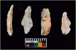 | Description / विवरण | There are n 4 flakes tool; there are flakes with sides trimmed, Marks of secondary flaking are present on the both the faces. |