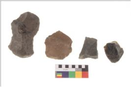 | Description / विवरण | There are n 4 flakes tool; there are multidirectional irregular scar pattern on them; made of short flakes and all four have tapering edges. |