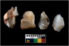 | Description / विवरण | There are n 4 ; worked utilized flakes; there are multidirectional irregular scar pattern on both dorsal and ventral face of the flakes. Two of them are tapering at one end. All are having sharp edges. |
