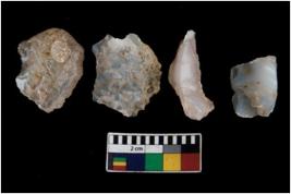 | Description / विवरण | There are n 4 ; worked utilized flakes; there are multidirectional irregular scar pattern on both dorsal and ventral face of the flakes. One of them is tapering at one end. All are having sharp edges. |