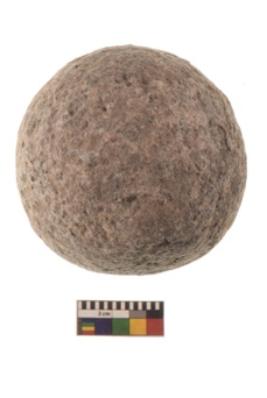| Description / विवरण | Specimen of a hammer stone roughly rounded in shape with grounded edges and flattish base. |