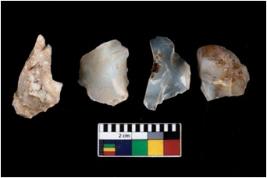 | Description / विवरण | There are n 4 ; worked utilized flakes; there are multidirectional irregular scar pattern on both dorsal and ventral face of the flakes. One of them is tapering at one end. All are having sharp edges. |
