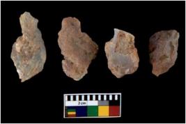 | Description / विवरण | There are n 4 utilized flake cores. There are multi directional irregular scar pattern on them. Three are tapering at one end and one has sharp edge. |