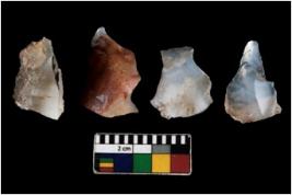 | Description / विवरण | There are n 4 ; worked utilized flakes; there are multidirectional irregular scar pattern on both dorsal and ventral face of the flakes. Two of them are tapering at one end. All are having sharp edges. |