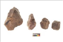 | Description / विवरण | There are n 4 flakes tool; there are multidirectional irregular scar pattern on them; made of short flakes and all four have tapering edges. |