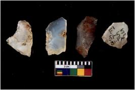 | Description / विवरण | There are n 4 cores; there are multi directional irregular scar pattern on them. Some of them are tapering at one end. 1 chalcedony and 3 quartz |