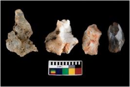 | Description / विवरण | There are n 4 ; worked utilized flakes; there are multidirectional irregular scar pattern on both dorsal and ventral face of the flakes. One of them is tapering at one end. All are having sharp edges. |