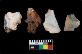 | Description / विवरण | There are n 4 ; worked utilized flakes; there are multidirectional irregular scar pattern on both dorsal and ventral face of the flakes. Two of them are tapering at one end. All are having sharp edges. |
