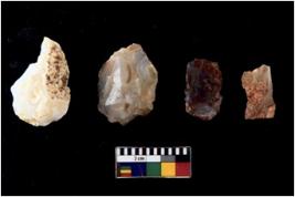 | Description / विवरण | There are n 4 cores; there are multi directional irregular scar pattern on them. 1 chalcedony , 1 chert and 2 quartz |