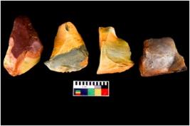 | Description / विवरण | There are n 4 Objects; among them three are points and one is trapezes. They are having tiny retouchings along the edges and some not. The surface show singular, to double to multiple flake scars. |