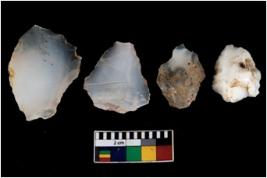 | Description / विवरण | There are n 4 ; worked utilized flakes; there are multidirectional irregular scar pattern on both dorsal and ventral face of the flakes. All are having sharp edges. |