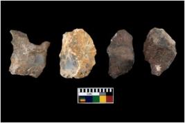 | Description / विवरण | There are n 4 utilized flake cores. Out of them one is made up of Chert and three are made up of Chalcedony. There are multi directional irregular scar pattern on them. One has sharp edge and three have blunted edges. |