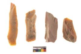 | Description / विवरण | There are n 4 flakes tool; there are multidirectional irregular scar pattern on them; made of short flakes and all four have tapering edges. |