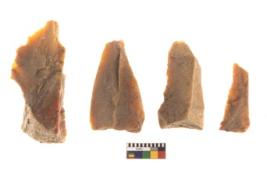 | Description / विवरण | There are n 4 flakes tool; there are multidirectional irregular scar pattern on them; made of short flakes and all four have pointed edges. |