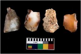 | Description / विवरण | There are n 4 ; worked utilized flakes; there are multidirectional irregular scar pattern on both dorsal and ventral face of the flakes. Two of them are tapering at one end. All are having sharp edges. |