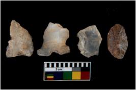 | Description / विवरण | There are n 4 utilized flake cores. There are multi directional irregular scar pattern on them. One has sharp edge and three have blunted edges. |