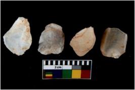 | Description / विवरण | There are n 4 utilized flake cores. There are multi directional irregular scar pattern on them. Two have blunted edges and two have round edges. |