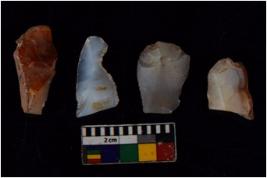 | Description / विवरण | There are n 4 flakes tool; there are large flakes with sides trimmed, Marks of secondary flaking are present on the both the faces.The dorsal is relatively flat. |
