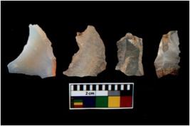 | Description / विवरण | There are n 4 utilized flake cores. There are multi directional irregular scar pattern on them. All of them are tapering at one end. |