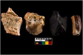 | Description / विवरण | There are n 04 objects; most of them are same in size. Some are tapering at one end.All are having sharp edges. One is fluted core. |