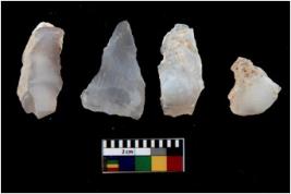 | Description / विवरण | Specimen of a cores with several broad fluted marks. The reverse bulb and platform can be seen. The flake scars are seen on all sides. |