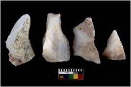 | Description / विवरण | Specimen of a cores with several broad fluted marks. The reverse bulb and platform can be seen. The flake scars are seen on all sides. |