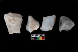 | Description / विवरण | Specimen of a cores with several broad fluted marks. The reverse bulb and platform can be seen. The flake scars are seen on all sides. |