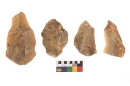 | Description / विवरण | There are n 4 flakes tool; there are multidirectional irregular scar pattern on them; made of short flakes and all four have tapering edges. |
