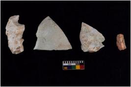 | Description / विवरण | There are n 4 flakes tool; there are large flakes with sides trimmed, Marks of secondary flaking are present on the both the faces. |