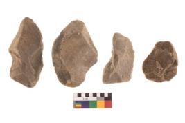 | Description / विवरण | There are n 4 flakes tool; there are multidirectional irregular scar pattern on them; made of short flakes and all four have tapering edges. |