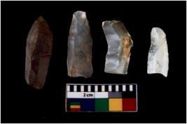 | Description / विवरण | There are n 4 flakes tool; there are flakes with sides trimmed, Marks of secondary flaking are present on the both the faces. |