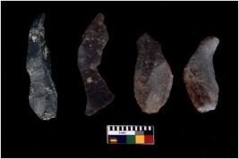 | Description / विवरण | There are n 4 Flake tool; There are multidirectional irregular scar pattern on them. few have blunt edges, Some of them are tapering at one end. |