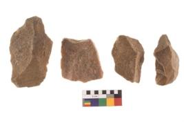 | Description / विवरण | There are n 4 flakes tool; there are multidirectional irregular scar pattern on them; made of short flakes and all four have tapering edges. |
