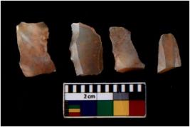 | Description / विवरण | There are n 4 flakes tool; there are flakes with sides trimmed, Marks of secondary flaking are present on the both the faces. The dorsal is relatively flat. |