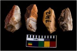 | Description / विवरण | There are n 04 object; all of them have sharp edges. Blade removing marks are visible. All are tapering at one end. |