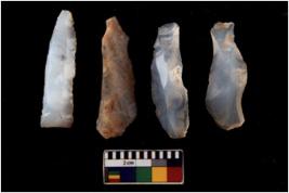 | Description / विवरण | There are n 4 flakes tool; there are large flakes with sides trimmed, Marks of secondary flaking are present on the both the faces. |