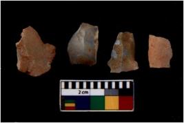 | Description / विवरण | There are n 4 flakes tool; there are flakes with sides trimmed, Marks of secondary flaking are present on the both the faces. The dorsal is relatively flat. |