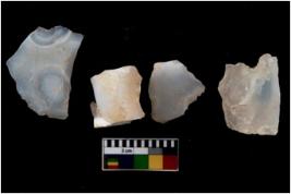 | Description / विवरण | Specimen of a cores with several broad fluted marks. The reverse bulb and platform can be seen. The flake scars are seen on all sides. |