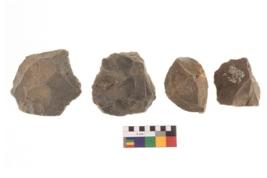 | Description / विवरण | There are n 4 flakes tool; there are multidirectional irregular scar pattern on them; made of short flakes and all four have tapering edges. |