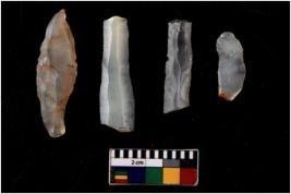 | Description / विवरण | There are n 4 Flake tool; There are multidirectional irregular scar pattern on them. few have blunt edges, Some of them are tapering at one end. |