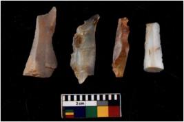| Description / विवरण | There are n 4 Flake tool; There are multidirectional irregular scar pattern on them. few have blunt edges, Some of them are tapering at one end. |