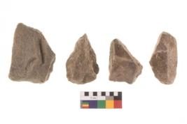 | Description / विवरण | There are n 4 flakes tool; there are multidirectional irregular scar pattern on them; made of short flakes and all four have tapering edges. |
